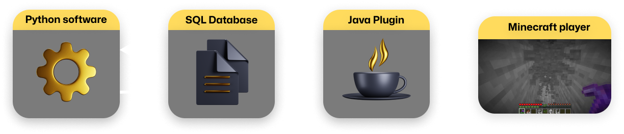 Strategically bridging the gap between Java, Python, Keras, and TensorFlow, I established a dual-server architecture. Python, Keras, and TensorFlow orchestrated backend analysis on a separate server, while a Java plugin directly interfaced with the Minecraft environment, channeling data to the analysis server through an intermediary SQL database.